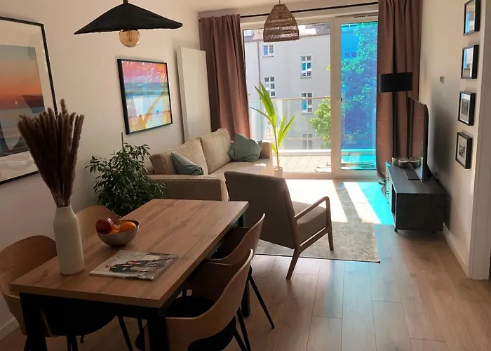 Ez szálláshely 15 perc sétára fekszik Kołobrzeg központjától. Az apartman a Dzielnica Uzdrowiskowa körzetben fekszik. Látogasson el a Skandynawia Restaurant étterembe, amely 150 méterre az apartmantól kínál lengyel fogásokat.